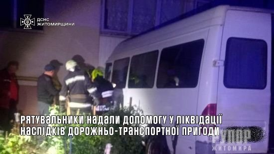 Вночі рятувальники залучалися на ліквідацію наслідків дорожньо-транспортної пригоди, що сталася в м.Звягель. За попередньою інформацією через зіткнення автомобіля Mercedes-Benz Sprinter зі стіною пʼятиповерхівки водія затисло пошкодженими конструкціями транспортного засобу. Рятувальники спочатку відтягнули автомобіль від стіни та зрізали водійські двері. А потім за допомогою розтискача деблокували травмованого чоловіка з автівки, поклали на ноші і транспортували до карети швидкої допомоги, яка доправила травмованого до медзакладу.