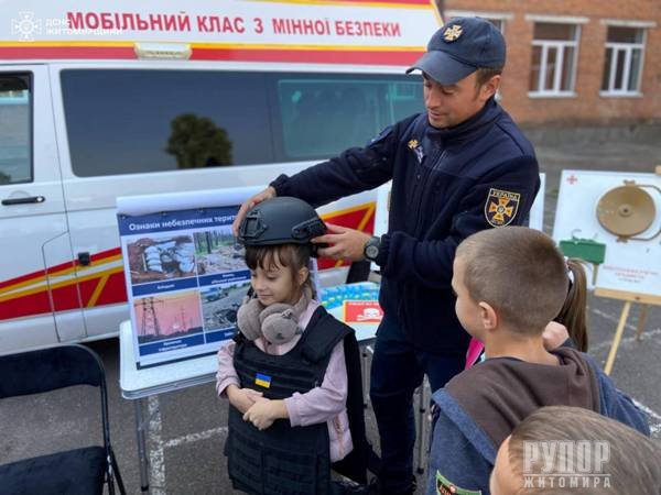 20 вересня рятувальники та патрульні поліцейські завітали до учнів початкових класів житомирського ліцею №20, аби навчити малечу правилам безпеки. До проведення заходу був залучений мобільний клас з мінної безпеки. У фокусі уваги традиційно була тема мінної та пожежної безпеки. Діти дізнавалися як уникати небезпек, пов'язаних зі знаходженням вибухонебезпечних предметів. Повторили основні правила: будь уважним, не підходь, не чіпай , телефонуй “101”. Крім цього, надзвичайники нагадали присутнім про порядок дій під час пожежі в будинку та на вулиці, правила користування електроприладами. Вони навели основні причини виникнення пожеж, а також пояснили принцип роботи вогнегасника. Також усі із задоволенням приміряли спеціальні засоби правоохоронців, сиділи у поліцейському авто та вивчали правила безпеки дорожнього руху. Аби правила безпеки завжди були під рукою, всі дітки отримали в подарунок яскраві листівки із відповідними рекомендаціями, розроблені UNICEF Ukraine та ДСНС України. Подібний захід сьогодні відбувся і в гімназії № 6 м. Бердичів.