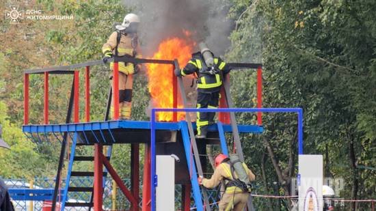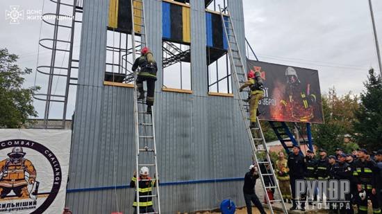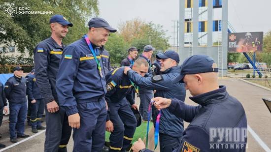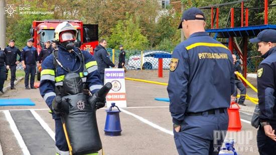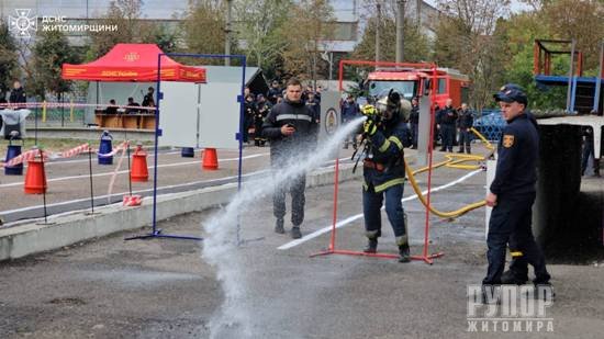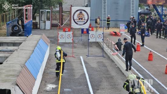 4 жовтня на базі навчально-тренувального комплексу аварійно-рятувальної частини м. Житомир відбулися змагання серед бійців ДСНС регіону – «Краща ланка ГДЗС» та «Кращий газодимозахисник» за форматом міжнародних ззмагань «Firefighter Combat Challenge». Більше 150 учасників та 29 команд змагалися в індивідуальних та командних естафетах за звання найкращих в області. Рятувальники з усіх районів області прибули на змагання, аби перевірити чи не розгубили бійці ДСНС свої вміння та навички з витривалості та спритності. Організатори змагань визначали призерів у двох етапах випробувань. Зокрема, кращого газодимозахисника визначали в індивідуальних вправах. Вогнеборець в бойовому спорядженні та апараті на стисненому повітрі для захисту органів дихання і зору, здіймався по драбині у вікно третього поверху навчальної вежі, де за допомогою рятувальної мотузки піднімав із землі 20-кілограмове навантаження. Далі ударами молота пересував по рейках 72-кілограмову металеву конструкцію. Виконавши ці вправи, він пробігав імпровізовану смугу перешкод із піногенераторів, брав водяний ствол під тиском та долав зворотну 20-ти метрову дистанцію у вигляді зачинених дверей, після чого мав влучно поцілити струменем води у мішень. У заключній частині першого етапу змагань учасник проводив евакуацію потерпілого вагою 80 кг із небезпечної для життя зони на відстань 30 метрів, рухаючись до фінішу спиною. На другому етапі рятувальники працювали у складі команд по чотири чоловіка. Цей етап включав в себе елементи психологічної смуги перешкод, роботу в непридатному для дихання середовищі, пошук та евакуацію умовного потерпілого із небезпечної зони. За підсумками випробувань, у номінації «Кращий газодимозахисник» перемогу здобув звягельський рятувальник Дмитро Десяк. Друге місце посів Андрій Кучерук з м. Малин. Замкнув трійку призерів житомирянин Юрій Кожемякін (2 ДПРЧ). У другому етапі змагань в номінації «Краща ланка газодимозахисної служби» перемогли вогнеборці 3 державної пожежно-рятувальної частини м. Житомир. Друге місце посіла 26 ДПРЧ смт Романів. Бронзу вибороли рятувальники з м. Малин. Вітаємо переможців та учасників змагань! Бажаємо нових звершень та перемог!
