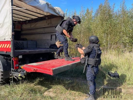 9 жовтня група піротехнічних робіт ДСНС області знищила два вибухонебезпечні предмети часів другої світової війни, що були виявлені поблизу с. Старочуднівська Гута Романівської територіальної громади Житомирського району та в с. Молочки Краснопільської територіальної громади Бердичівського району. У першому випадку на мінометну міну натрапив місцевий житель під час «тихого полювання». У другому ж – артилерійський снаряд виявив господар під час проведення земляних робіт на власній присадибній ділянці. Небезпечні знахідки знищені шляхом підриву у спеціально відведеному місці. Шановні громадяни! Рятувальники застерігають: при виявленні невідомих металевих предметів, схожих на боєприпаси, в жодному разі не торкайтеся їх, а звертайтеся за номерами екстрених служб «101» або «102».