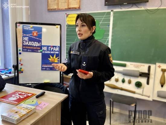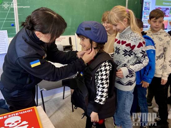 16 жовтня до учнів Житомирського ліцею №4 на безпековий захід завітали рятувальники. В ігровій формі вони навчали дітей правилам безпеки, зокрема розказали про основні причини пожеж та наголосили, що запобігти їм можна лише суворо дотримуючись правил безпеки. Учні дізнались як діяти, коли пожежа виникла вдома або у громадському місці, що потрібно робити в задимленому приміщенні і як правильно викликати службу порятунку “101”. Також не залишились поза увагою і правила безпечного поводження з вибухонебезпечними предметами. А щоб присутні сприймали інформацію ще й візуально, фахівці використовували 3-D макети боєприпасів. Дітлахи активно виконували всі завдання рятувальників, за що отримали цікаві подарунки від Дитячого фонду ООН (ЮНІСЕФ). Усі охочі змогли приміряти захисний одяг сапера та зробити фото на згадку.