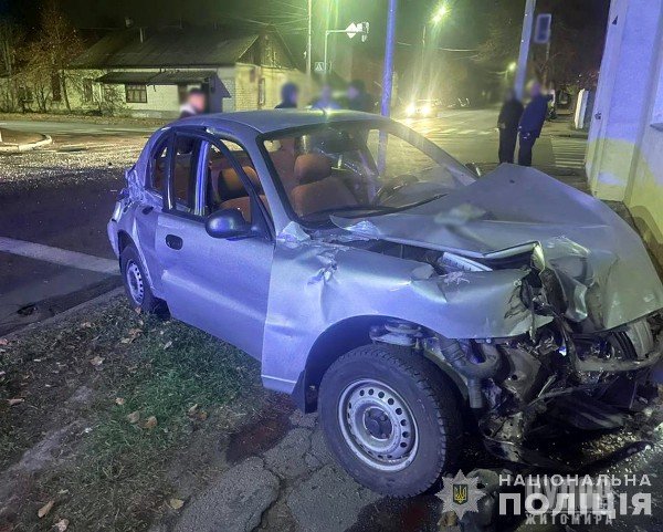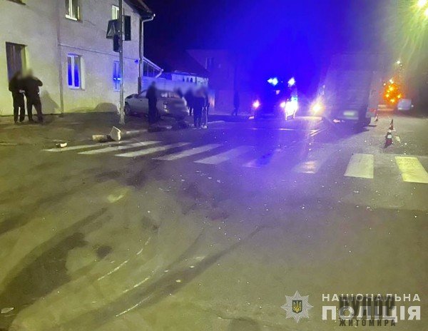Автотроща сталася 12 листопада на перехресті вулиць Івана Мазепи та Шевченка. На місці події працювала слідчо-оперативна група Житомирського райуправління поліції. Попередньо, близько 22:50 відбулося зіткнення автомобілів «Renault», за кермом якого перебував 34-річний містянин, та «Daewoo» під керуванням 19-річного жителя обласного центру. Після цього легковик змінив напрям руху та зіткнувся зі стіною будинку. У результаті ДТП травми отримали водій та троє пасажирів «Daewoo», 31-річний чоловік та дівчата, віком 21 та 18 років, всі - житомиряни. Їх було доставлено до медичного закладу. Слідчими Житомирського районного управління поліції розпочате кримінальне провадження за ч. 1 ст. 286 (Порушення правил безпеки дорожнього руху або експлуатації транспорту особами, які керують транспортними засобами) ККУ. Триває досудове розслідування. Шановні водії! Поліція закликає вас неухильно дотримуватися Правил дорожнього руху! Під час керування автомобілем будьте максимально обережні, обирайте швидкість руху та дистанцію, що дозволять вчасно зреагувати на зміну дорожніх обставин. Обов'язково враховуйте час доби, стан проїзної частини та дорожнього покриття.