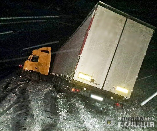 Дорожньо-транспортна пригода сталася вночі 10 грудня на 216 км автодороги Виступовичі – Житомир – Могилів-Подільський. Попередньо, близько 23:50 водійка автомобіля «Skoda Octavia», 27-річна жителька Вінниччини, здійснюючи рух з другорядної дороги на перехресті, допустила зіткнення з автопоїздом «Volvo» під керуванням 34-річного жителя Закарпаття. У результаті ДТП водійка та пасажир легковика, 23-річний житель Вінницької області, отримали травми та були доставлені до травмпункту Бердичівської міської лікарні. Водій вантажівки не постраждав. Крім того, під час освідування на вживання алкоголю зафіксовано перебування жінки у нетверезому стані (0,79 проміле). Нині триває встановлення всіх причин та обставин ДТП. Шановні водії! Керуючи транспортним засобом, суворо дотримуйтесь Правил дорожнього руху та заходів безпеки. За жодних обставин не сідайте за кермо в стані сп’яніння. Пам’ятайте, що від вашої відповідальності залежить життя та здоров’я інших учасників дорожнього руху!
