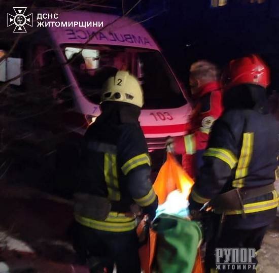 14 січня о 06:24 до Служби порятунку «101» надійшло повідомлення про пожежу в однокімнатній квартирі, що на п’ятому поверсі п’ятиповерхівки в м. Житомир. На місці події бійці ДСНС встановили, що осередок загоряння знаходиться в кімнаті, де вогонь охопив речі домашнього вжитку та загрожував поширенням оселею. На сходовій клітині перед входом в квартиру рятувальники виявили 83-річну власницю житла, яка не могла вільно пересуватися, але встигла повзком покинути місце пожежі. Медики надали жінці невідкладну допомогу, після чого фахівці ДСНС на ношах транспортували з п'ятого поверху до «карети» швидкої. З ймовірним діагнозом – отруєння продуктами горіння, її госпіталізували до лікувального закладу. Також рятувальники провели евакуацію мешканців сусідніх квартир, так як туди почав потрапляти їдкий дим. Трохи більше ніж за 30 хвилин пожежу було ліквідовано. Вогнем знищено речі домашнього вжитку на площі 25 кв. м. До гасіння залучалося 13 чоловік особового складу та 3 одиниці техніки. Ймовірна причина пожежі – необережне поводження з вогнем. Наразі остаточні обставини надзвичайної події встановлюються фахівцями.
