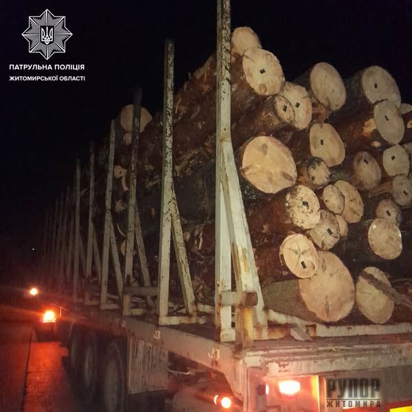 На Житомирщині патрульні виявили у водія підроблене посвідчення та невідповідність у документах на вантаж деревини