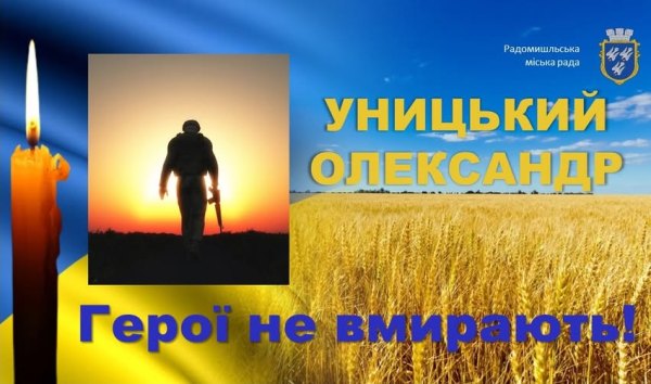 Радомишльська міська рада з сумом повідомляє, що в районі н.п. Вовчанськ Чугуївського району Харківської області загинув Захисник України, наш земляк, Олександр Леонідович Уницький, 1983 року народження. "Знову сумна звістка прийшла у наше місто. Під час виконання військового обов’язку в районі н.п. Вовчанськ Чугуївського району Харківської області загинув житель нашої громади Олександр Леонідович Уницький, 03.11.1983 р.н. Щирі співчуття рідним і близьким з приводу непоправної втрати. Прощання з Героєм відбудеться завтра, 06 лютого 2025 року. О 09:00 – прощання біля рідної домівки; 10:00 - Свято-Миколаївський храм; 11:00 - Меморіал Слави. Просимо усіх долучитися до прощальної церемонії. Вшануймо всією громадою пам’ять Воїна, який віддав життя за волю та незалежність нашої країни. Вічна пам‘ять та слава Герою!" - йдеться у повідомленні.