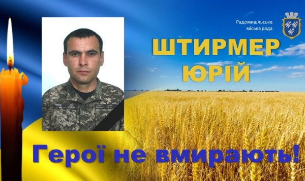 І знову сумна звістка сколихнула Радомишльську громаду. Звістка про смерть українських захисників завжди є важкою і болісною… Ще один український військовий, ще один наш земляк, що воював за мир та свободу нашої країни, пішов від нас. Радомишльська міська рада з сумом повідомляє, що 11 лютого 2025 року поблизу населеного пункту Надіївка Покровського району Донецької області загинув Захисник України ШТИРМЕР Юрій Юрійович. "ШТИРМЕР Юрій Юрійович, 11 лютого 2025 року внаслідок штурмових дій противника поблизу населеного пункту Надіївка Покровського району Донецької області, отримав поранення несумісне з життям. Щирі співчуття рідним і близьким з приводу непоправної втрати. Прощання з Героєм відбудеться завтра, 20 лютого 2025 року. О 09:30 – прощання біля рідної домівки; 10:00 - Свято-Миколаївський храм; 11:00 - Меморіал Слави. Просимо усіх долучитися до прощальної церемонії. Вшануймо всією громадою пам’ять Воїна, який віддав життя за волю та незалежність нашої країни. Вічна пам‘ять та слава Герою!" - йдеться у повідомленні.