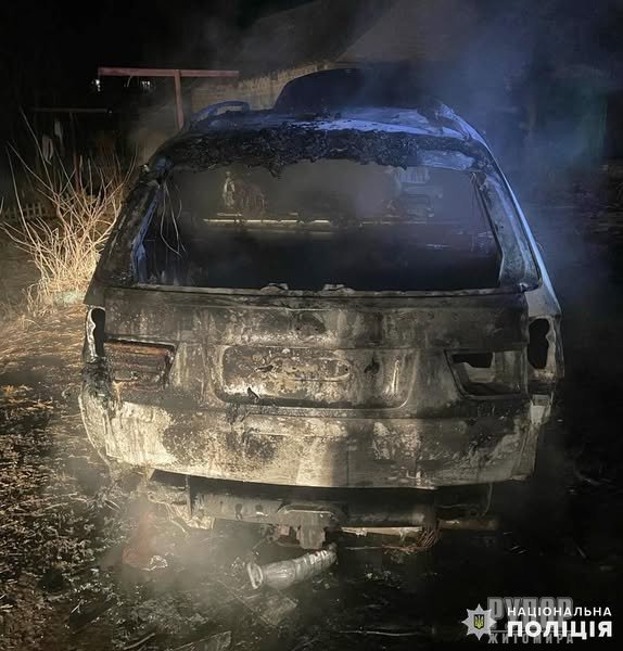 Вночі 25 лютого до райвідділу поліції надійшло повідомлення про загоряння транспортного засобу «BMW X5» біля однієї з багатоповерхівок райцентру. Ймовірною причиною пожежі був підпал. Поліцейські встановили та затримали причетного. Проводиться досудове розслідування. На місці події працювала слідчо-оперативна група Бердичівського райвідділу поліції та рятувальники. Вогнем було пошкоджено задню та бокову пасажирські частини автомобіля. За висновком працівників ДСНС ймовірною причиною загоряння автомобіля був підпал. Поліцейські вилучили слідову інформацію. Встановлено, що автомобіль належить 30-річному містянину. За його свідченнями, до події могли бути причетними місцеві жителі, які у соціальній мережі натякали йому на неприємності. Перевіривши таку версію, оперативники кримінальної поліції райвідділу та управління карного розшуку ГУНП області затримали підозрюваного, 29-річного жителя райцентру. Чоловік пояснив, що мотивом такого вчинку стала помста через опубліковане власником авто відео в соціальній мережі. Слідчі затримали чоловіка у процесуальному порядку. Слідчі кваліфікували подію за ч. 2 ст. 194 (Умисне знищення або пошкодження майна) КК України. Нині вирішується питання про оголошення чоловікові про підозру та обрання запобіжного заходу. Процесуальне керівництво здійснює Бердичівська окружна прокуратура. Триває встановлення всіх обставин події. За чинним законодавством чоловікові за такі дії може загрожувати покарання у вигляді позбавлення волі строком від 3 до 10 років.