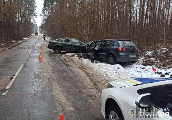 Дорожньо-транспортна пригода сталася 2 березня близько 12:00 на автодорозі сполученням Новогуйвинське - Озерне. Попередньо, близько 12:30 зіткнулися автомобіль «Volkswagen Passat» під керуванням 48-річного жителя місцевої громади та зустрічний «Volkswagen Golf», за кермом якого перебував 39-річний житель Станишівської громади. За попередньою інформацією, водій першого транспортного засобу виконував маневр обгону попутного автомобіля та виїхав на смугу зустрічного руху. У результаті ДТП тілесні ушкодження отримали обидва водії, а також 43-річний пасажир автомобіля «Volkswagen Golf», житель Новогуйвинської громади. Двох із них було госпіталізовано до обласної клінічної лікарні. Нині триває встановлення всіх причин та обставин події в межах відкритого кримінального провадження за ч. 1 ст. 286 (Порушення правил безпеки дорожнього руху або експлуатації транспорту особами, які керують транспортними засобами) КК України. Шановні водії! У зимовий період та за несприятливих погодних умов правоохоронці закликають вас бути особливо уважними й обережними на дорогах. Дотримуйтеся безпечної швидкості та дистанції, уникайте різких гальмувань і маневрів. Плануючи виконати обгін, переконайтеся, що це буде безпечно для вас та інших учасників руху. Будьте відповідальними!
