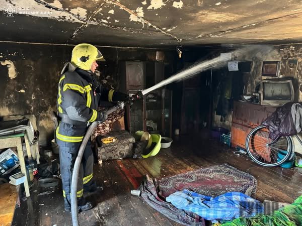 Трагедія сталася сьогодні вдень у м. Звягель. По прибуттю бійців ДСНС спостерігалося задимлення в будинку. В одній із кімнат вони виявили на дивані 39-річного чоловіка без ознак життя. Силами надзвичайників пожежу ліквідовано менш ніж за півгодини. Вогнем знищено облицювання стін, диван та речі домашнього вжитку на площі 15 кв. м. Подальшого поширення полум’я не допущено.