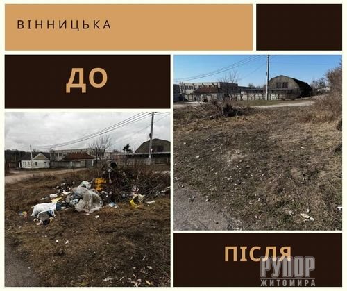 На виконання рішень міської постійно діючої комісії з питань поводження з безхазяйними відходами силами КП «Автотранспортне підприємство 0628» Житомирської міської ради ліквідовано ще два стихійних сміттєзвалища за адресами: вул. Небесної Сотні, 3 та на розі вул. Кривий брід та вул. Вінницької. Окрім зазначених адрес, власником земельної ділянки по вул. Великій Бердичівській, 24 з-за технічної підтримки ТОВ «Грін Бін Україна» ліквідовано стихійне сміттєзвалище. Нагадуємо, що з 4 березня по 18 квітня триває загальноміське прибирання! З організаційних питань можна звернутись до відділу екології та природних ресурсів міської ради: за адресою: м. Житомир, м-н ім. С. П. Корольова, 4/2, каб. 302 (Житомирська міська рада); за номером телефону: 48-11-86.