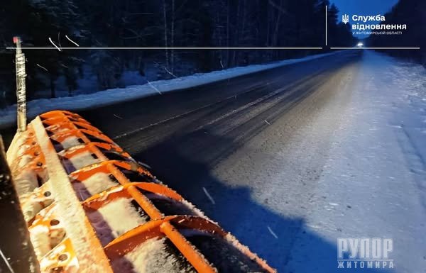 Як повідомляє служба відновлення та розвитку інфраструктури у Житомирській області, всю ніч для забезпечення безпеки руху та недопущення ожеледиці на дорогах працювало 33 дорожника та 17 одиниць спецтехніки.