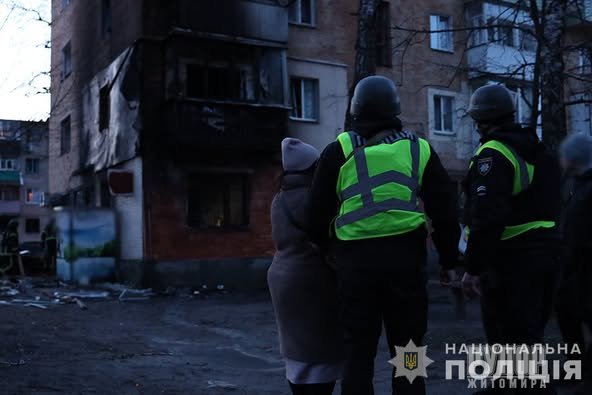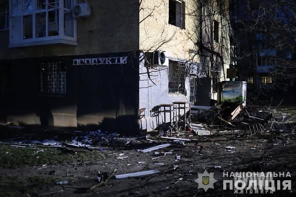 Увечері 10 квітня ворог атакував область. В одній із громад Житомирського району через падіння уламків сталася пожежа в чотириповерховому будинку. На місці події працюють усі екстрені служби. Станом на 22:00 відомо про одного загиблого та п’ятьох травмованих людей, серед них дитина. Потерпілим надається необхідна медична допомога. Пожежу, що виникла на першому поверсі будинку, було ліквідовано. Також пошкоджень зазнали інші поверхи та сусідні будинки. Слідчо-оперативні групи відділу поліції №1 Житомирського РУП та ГУ Нацполіції області документують наслідки ворожої атаки. Вибухотехніки поліції проводять огляд місця події та вилучають уламки. Для місцевих мешканців розгорнуто пункт обігріву ДСНС.