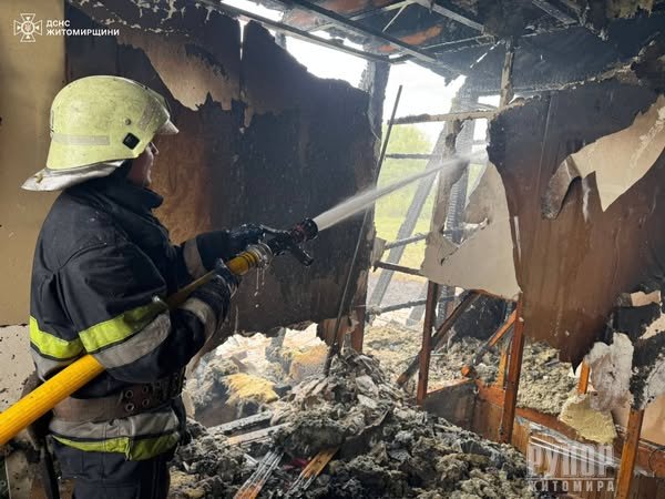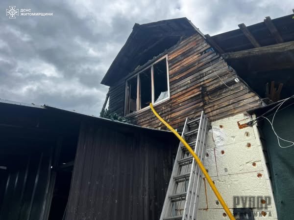 9 травня о 13:56 до Служби порятунку «101» надійшло повідомлення про пожежу в господарчій будівлі, яка поширилась на житловий будинок у Звягелі. По прибуттю бійців ДСНС було вогнем охоплено господарчу споруду та мансарду, впритул розташованого житлового будинку. Ускладнювало процес гасіння те, що будинок був критий жестю. Для підвозу води було залучено ще одне відділення вогнеборців. Година знадобилася рятувальникам для ліквідації пожежі. Вогнем знищено майно в господарчій споруді, перекриття оселі на площі 40 кв. м, частково пошкоджено покрівлю. Ймовірно зайнялося через порушення правил пожежної безпеки при експлуатації електрообігрівача. Наразі остаточні обставини надзвичайної події встановлюються фахівцями.