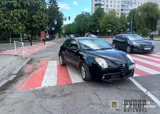 Дорожньо-транспортна пригода сталася вдень 13 травня на вулиці Шевченка в райцентрі. За попередньою інформацією, 44-річна звягелька, керуючи автомобілем «Alfa Romeo», здійснила наїзд на 75-річну місцеву жительку, яка перетинала автошлях. У результаті ДТП пенсіонерка отримала травми та була доставлена до лікарні. Слідчі Звягельського райвідділу поліції розпочали кримінальне провадження за ч. 1 ст. 286 (Порушення правил безпеки дорожнього руху або експлуатації транспорту особами, які керують транспортними засобами) КК України. Поліцейські закликають учасників дорожнього руху бути уважними! Водії, заздалегідь знижуйте швидкість перед світлофорами та пішохідними переходами, поворотами та перехрестями. Пішоходи, переходьте дорогу лише у встановлених місцях та після того, як переконаєтеся, що водій вас бачить та встигає зупинитися.