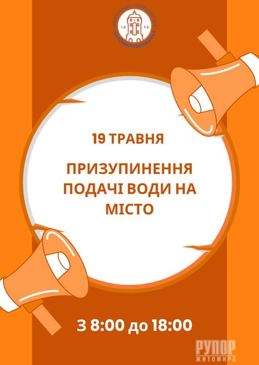 Завтра, 19 травня буде тимчасово призупинено подачу води в місто.