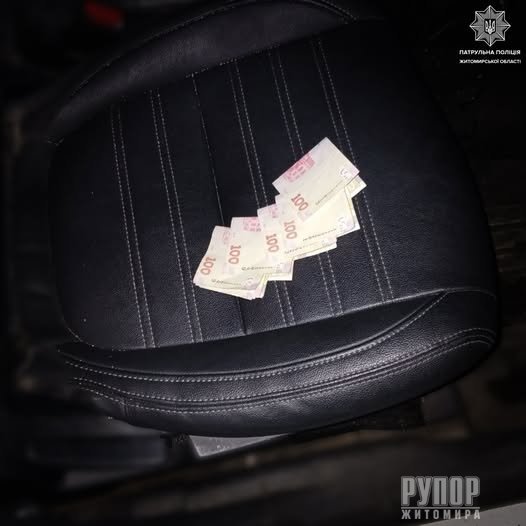 В іншому випадку, за порушення швидкісного режиму патрульні зупинили авто Audi, водій намагався "відкупитися" від відповідальності та пропонував грошові кошти, після чого поклав їх у підсумок на бронежилеті поліцейського.