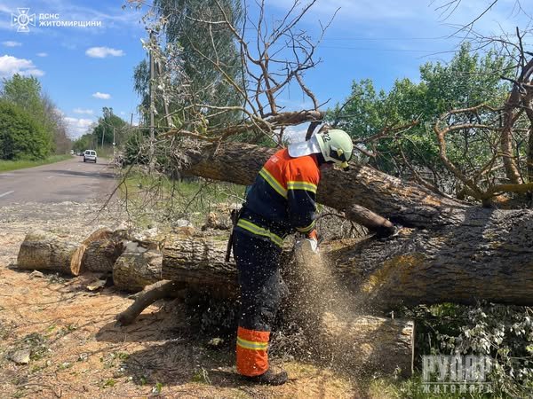 Упродовж останньої доби рятувальники двічі залучалися до ліквідації наслідків негоди в Житомирському районі. В обох випадках йшлося про повалені вітром дерева, які перекривали рух транспорту. Перший інцидент стався поблизу села Волянщина — дерево впало на дорогу та заблокувало проїзд у двох напрямках. Рятувальники розпиляли його бензопилою та прибрали з проїжджої частини. Другий випадок трапився біля селища Любар. Там також оперативно усунули деревину, що перешкоджала руху транспорту.