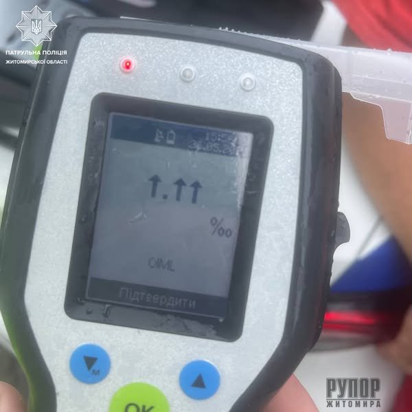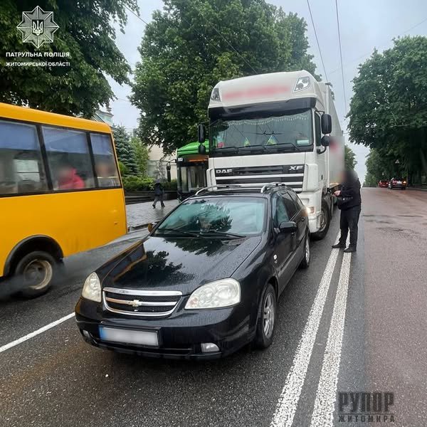 Учора патрульні отримали повідомлення, про ДТП без потерпілих на вулиці Великій Бердичівській, за участю легковика та вантажівки. На місці виклику встановили, що водій вантажівки порушив вимоги дорожнього знака 3.3 "Рух вантажних автомобілів заборонено" ПДР, не дотримався безпечної дистанції та зіткнувся з авто Chevrolet, водій якого рухався попереду. Під час спілкування та перевірки документів у водія вантажного транспортного засобу DAF з напівпричепом, патрульні виявили у нього ознаки алкогольного сп'яніння, а саме: різкий запах алкоголю з порожнини рота, нестійка хода, почервоніння шкіри обличчя. Підозру інспекторів підтвердив алкотестер Драгер — ⬆️.⬆️⬆️ проміле, а це означає, що рівень алкоголю в організмі чоловіка перевищував 6 проміле. Отже, на правопорушника патрульні склали протоколи за ч. 1 ст. 130 (Керування транспортним засобом у стані сп‘яніння), за ст. 124 (Порушення ПДР, що призвело до ДТП) та постанову за ч. 1 ст. 122 (Порушення вимог дорожніх знаків та розмітки) КУпАП. Ми відсторонили його від керування автотранспортом. Водії, кермуйте відповідально та за жодних обставин не сідайте за кермо в стані сп'яніння!