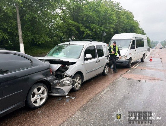 Дорожньо-транспортна пригода сталася 28 травня близько 08:30 на проспекті Миру в обласному центрі. На місці події працювала слідчо-оперативна група Житомирського районного управління поліції №1. Попередньо, сталося зіткнення між мікроавтобусом «Mercedes-Benz» та легковиком тієї ж марки, що рухалися в попутному напрямку. Унаслідок удару легковик за інерцією зіткнувся з автомобілем «ВМW», який знаходився попереду. Внаслідок ДТП травми отримали пасажири легковиків, 17-річний юнак та 47-річна жінка, жителі Березівської громади. Їх було доставлено до лікарень. Нині триває з’ясування всіх причин та обставин події. Шановні водії! Поліцейські закликають вас бути уважними за кермом. Дотримуйтеся швидкісного режиму та безпечної дистанції, не відволікайтеся під час керування та враховуйте стан дорожнього покриття.