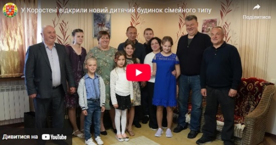 Сьогодні, 29 травня, у місті Коростень офіційно відкрили новий дитячий будинок сімейного типу. Новосілля відсвяткувала родина Віри Григор’євої та Сергія Васильчука. У заході взяли участь начальник Житомирської обласної військової адміністрації Віталій Бунечко, його заступник Віктор Градівський та начальниця Служби у справах дітей ОВА Анна Лужко.