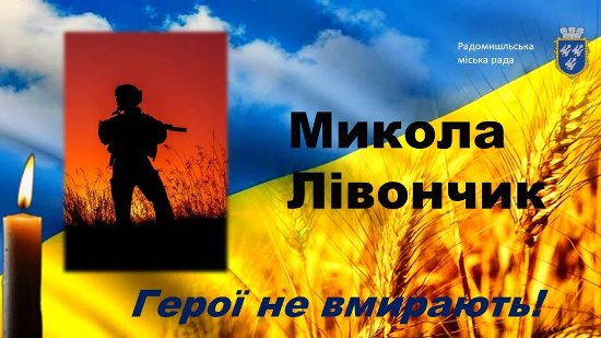 Радомишльська міська рада з сумом повідомляє, що на щиті додому повертається Захисник України Лівончик Микола Миколайович. "02 червня 2025 року, Радомишльська громада прощатиметься із загиблим Героєм та захисником України Лівончиком Миколою Миколайовичем, 27.07.1984 року народження. 22.06.2024 року Микола призивався Бучанським РТЦК та СП Київської області. А з 22.08.2024 вважався зниклим безвісти. Останнє прощання із загиблим Героєм відбудеться: - 10:00 служба у Свято–Миколаївському храмі; - 11:00 прощання на Меморіалі Слави. Чин поховання пройде в с. Котівка Радомишльської громади. Світла і вічна пам'ять Герою! Щирі співчуття родині!" - йдеться у повідомленні.