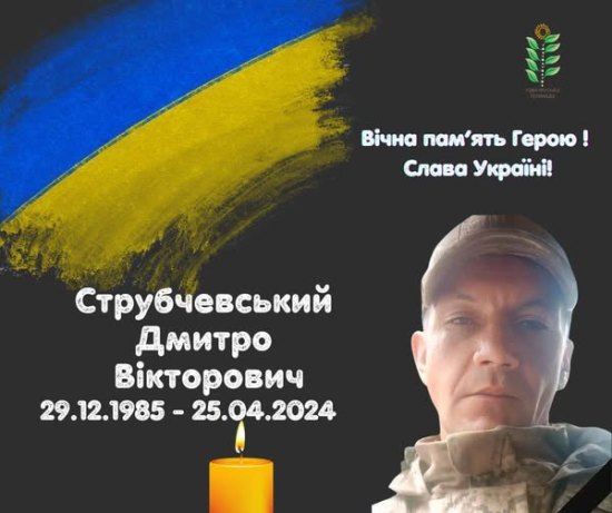 Курненська територіальна громада з сумом повідомляє, що загинув Захисник України Струбчевський Дмитро Вікторович."Скорботна звістка прийшла у село Теньківка... На жаль, підтвердилась загибель військовослужбовця Струбчевського Дмитра Вікторовича 29.12.1985 р.н., який загинув, виконуючи військовий обов'язок, в бою за Україну, її свободу і незалежність 25 квітня 2024 року в районі н.п. Соловйове Донецької області. Висловлюємо щирі співчуття рідним та близьким полеглого Захисника України! Вічна Слава Герою! Інформацію про час та місце прощання з Героєм буде повідомлено додатково", - йдеться у повідомленні.