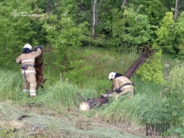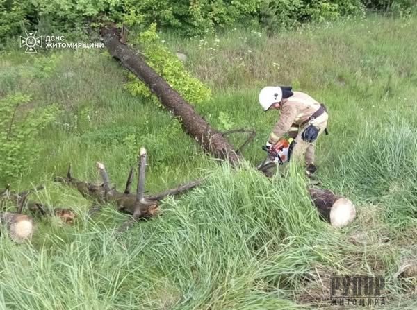 У селі Клочеве Коростенського району дерево впало на дорогу та перекрило рух транспорту в обидва боки. За допомогою бензопил рятувальники прибрали його та звільнили шлях для водіїв.