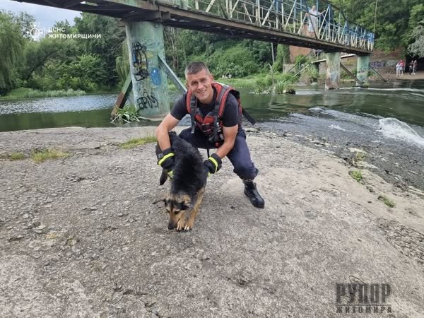 На Житомирщині рятувальники витягли чотирилапого з річкової пастки