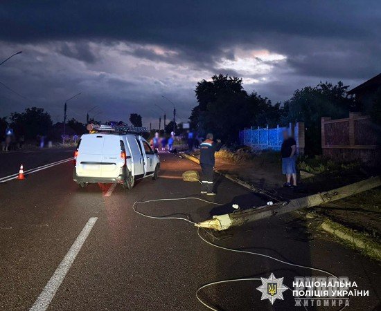 Дорожньо-транспортна пригода сталася 20 липня близько 21:00 на автошляху Житомир-Чернівці, у селі Тетерівці. На місці події працювала слідчо-оперативна група Житомирського районного управління поліції №1 та фахівці ДСНС. Попередньо, 23-річний житель Житомирського району, рухаючись автомобілем BMW у напрямку села Денишів, виїхав за межі проїзної частини та допустив зіткнення з електроопорою. У результаті травми отримали керманич та пасажирка легковика, 22-річна житомирянка. Їх було доставлено до медичного закладу. Нині всі обставини події з’ясовують слідчі Житомирського райуправління поліції №1. Водночас правоохоронці звертаються до водіїв: під час керування автомобілем будьте максимально обережні. Обов'язково враховуйте час доби, стан проїзної частини та дорожнього покриття. Пам’ятайте, що дозволена швидкість руху в населених пунктах – 50 км/год, тож дотримуйтеся такого обмеження. Джерело: https://ruporzt.com.ua/oblasni_novini/224637-u-peredmst-zhitomira-travmi-v-dtp-otrimali-vody-ta-pasazhirka-legkovika.html