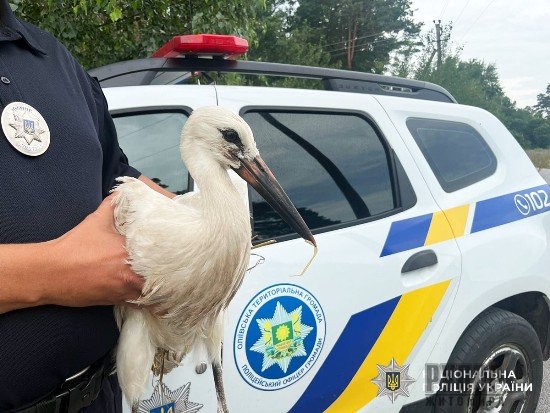 На Житомирщині поліцейський офіцер громади допоміг врятувати лелеку