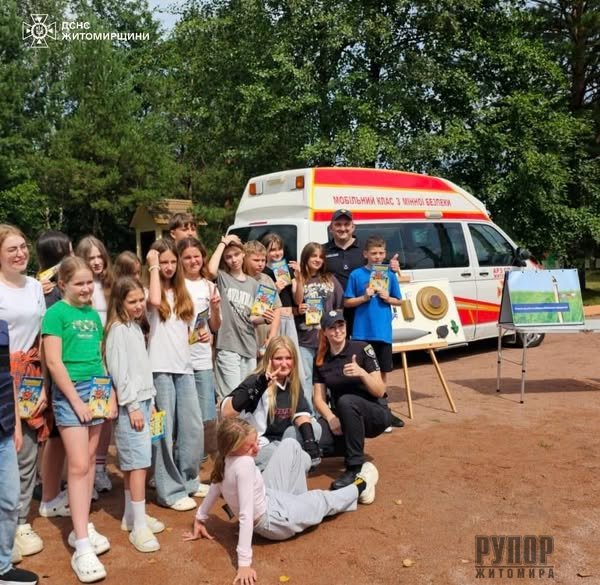Учора у літньому дитячому таборі в с. Вишпіль Житомирського району рятувальники разом із патрульними поліцейськими провели пізнавальний захід для юних відпочивальників. У ході заходу говорили про те, що робити в небезпечних ситуаціях та як уберегти себе. Також для дітей працював мобільний клас з мінної безпеки: 3D-моделі, реальні історії, корисні поради та лайфхаки, що можуть врятувати життя. А поліцейські показали дітям службове авто, спецзасоби й нагадали правила безпеки на дорозі. Було багато усмішок, вражень і дружніх фото! А ще – кожен отримав яскравий комікс від ЮНІСЕФ із порадами, які мають знати всі діти. Джерело: https://ruporzt.com.ua/oblasni_novini/225129-bezpechne-lto-dlya-dtey-zhitomirschini.html