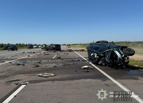 Дорожньо-транспортна пригода сталася 29 серпня близько 11:40 на трасі Київ – Чоп, неподалік села Кам’яного Майдану Звягельського району. За попередньою інформацією, 35-річний водій позашляховика Renault Duster, житель Звягельщини, не впорався з керуванням, виїхав на смугу зустрічного руху, де сталося зіткнення з автомобілем Volkswagen, за кермом якого перебував 44-річний житель Київщини. Неконтрольований рух транспортних засобів призвів до подальшого їхнього зіткнення ще з двома автомобілями – BMW та Lexus. У результаті ДТП травми отримали водій та 37-річний пасажир автомобіля Volkswagen, керманич Renault Duster, а також 42-річна пасажирка автомобіля BMW. Усіх їх було госпіталізовано. Нині поліцейські встановлюють причини та обставини події. Водночас правоохоронці закликають водіїв бути уважними за кермом, особливо в умовах інтенсивного руху транспорту. Дотримуйтеся безпечної швидкості та дистанції, уникайте різких гальмувань і маневрів. Плануючи виконати обгін, переконайтеся, що це буде безпечно для вас та інших учасників руху. Джерело: https://ruporzt.com.ua/oblasni_novini/227019-na-zhitomirschin-na-tras-kiyiv-chop-dtp-za-uchast-chotiroh-avtomoblv.html