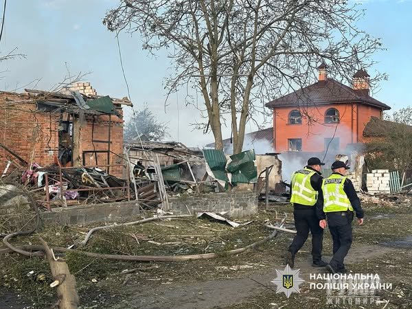 Вночі та зранку 10 вересня відбулися масовані ворожі атаки дронами-камікадзе та ракетами в Житомирському та Бердичівському районах. Станом на 11:00 відомо про одного загиблого чоловіка в Житомирському районі. Ще п’ятьох постраждалих людей (четверо - в Житомирському районі та одного - в Бердичівському) доставлено до лікарень для надання допомоги. Пошкоджень зазнали декілька цивільних підприємств, приватні будинки та автомобілі. Слідчо-оперативні групи ГУНП в Житомирській області, відділу поліції №1 (Житомир) та Житомирського райуправління №1, Бердичівського райвідділу поліції, а також поліцейські вибухотехніки працюють на місцях подій. Правоохоронці проводять огляд і документують наслідки ворожої атаки, приймають відповідні заяви та надають необхідну правову допомогу громадянам. Джерело: https://ruporzt.com.ua/oblasni_novini/227612-na-zhitomirschin-polcya-dokumentuye-nasldki-rosyskih-obstrlv.html