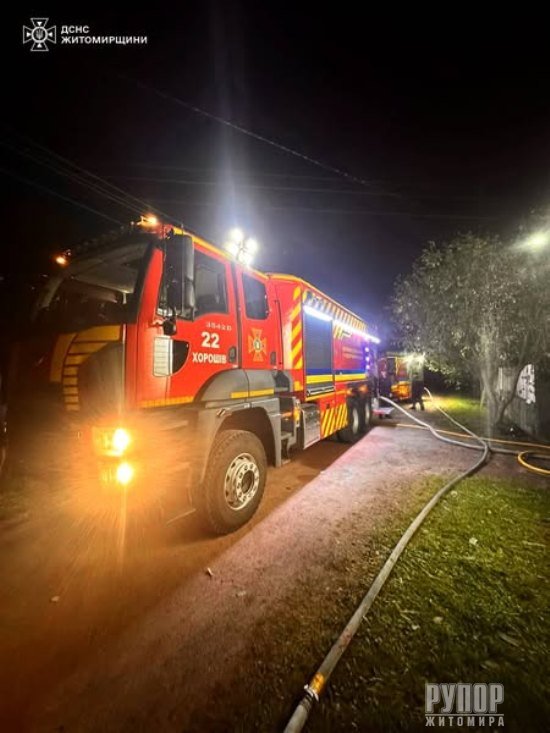 23 вересня о 20:20 до Служби порятунку «101» надійшло повідомлення про пожежу в триповерховому приватному житловому будинку в селищі Хорошів Житомирського району. Вогонь охопив третій поверх оселі. Площа пожежі складала близько 360 кв. м. Ускладнювало гасіння сильне задимлення та нестандартне розташування сходових клітин та кімнат. Бійці ДСНС три години боролися з вогнем. У результаті пожежі знищено дах по всій площі та майно. Подальшого поширення не допущено. Загиблих та травмованих немає. На місці працювало 20 рятувальників та 4 одиниці техніки. Усі обставини наразі встановлюються. Джерело: https://ruporzt.com.ua/oblasni_novini/228461-u-zhitomirskomu-rayon-vogneborc-lkvduvali-pozhezhu-u-tripoverhovomu-zhitlovomu-budinku.html