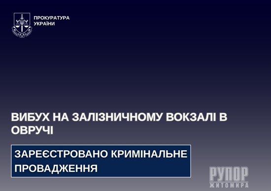 За фактом вибуху на залізничному вокзалі в Овручі зареєстровано кримінальне провадження
