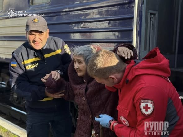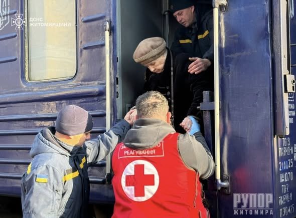 До Бердичева прибули 10 літніх людей із прифронтових областей України. Це вже вдруге за останні два тижні евакуаційний поїзд з людьми похилого віку геріатричного пансіонату, які змушені залишати свої домівки через війну. На залізничному вокзалі пенсіонерам надали допомогу рятувальники, медики, представники обласної влади та волонтери Червоного Хреста. Офіцер-рятувальник громад супроводжував людей під час пересадки, допомагав із розселенням та комунікацією з соціальними службами. Усі служби разом подбали, щоб прибуття пройшло безпечно та комфортно, а умови для подальшого проживання забезпечували все необхідне для життя. Джерело: https://ruporzt.com.ua/oblasni_novini/230523-zhitomirschina-znovu-priynyala-evakuacyniy-potyag.html