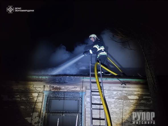 Вночі вогнеборці гасили пожежу в приватному домогосподарстві у с. Киянка Звягельського району. На момент прибуття рятувальників полум’я охопило покрівлю та частину перекриття дерев’яного житлового будинку. Існувала загроза перекидання вогню на дві поруч розташовані господарчі будівлі. Зусиллями фахівців ДСНС за три години пожежу вдалося ліквідувати. Вогонь знищив покрівлю та частину перекриття будинку, подальшого поширення не допущено. Усі обставини на місці події з’ясовує офіцер-рятувальник громади. Джерело: https://ruporzt.com.ua/oblasni_novini/231386-u-zvyagelskomu-rayon-vogneborc-gasili-pozhezhu-v-privatnomu-domogospodarstv.html