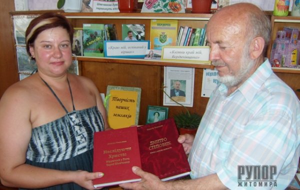 За підтримки першого заступника голови райдержадміністрації свободівця Олексія Побережного днями Слободищенська сільська бібліотека отримала оновлення для своїх полиць. Видання для бібліотеки передав письменник–сучасник, кандидат наук, доктор філософії, професор, академік Академії наук Вищої школи України Дмитро Власович Степовик, який є уродженцем села Слободище. У листі до бібліотекарки Олени Науменко письменник коротко описує свою приналежність до села де народився, де ходив до школи та, будучи ще школярем, разом із родиною виїхав жити на Волинь. Згодом навчався в Київському державному університеті імені Тараса Шевченка, а після цього так і залишився жити у Києві. Нажаль, з тих часів, коли Дмитро Власович покинув рідне село. Проте, проживаючи у столиці він не забув про рідні місця, пам’ятає його історію, знає його сучасність, розвиток та проблеми, а також про життя його мешканців. Саме для їхнього дозвілля Дмитро Власович зробив таку благородну справу. 42 позиції книг і документів за переліком були передані свободівцями Олексієм Побережним та Юрієм Лукуцом до місцевої бібліотеки села Слободище, а саме: видання про Дмитра Степовика, книги з особистої бібліотеки та копії документів про науковця починаючи від свідоцтва про народження закінчуючи випискою з трудової книжки. «Свого часу ця геніальна людина спрямувала мої наукові інтереси. Тому, маємо надію, що учні, молодь, а також старше покоління мешканців села Слободище будуть виявляти бажання дізнатися про своїх видатних земляків, цікавитись їхніми творчими здобутками, а подаровані Дмитром Степовиком книги стануть їм у пригоді» - наголосив перший заступник голови Бердичівської райдержадміністрації Олексій Побережний. Прес-служба Житомирської обласної організації ВО «Свобода»