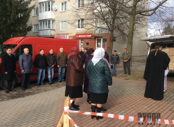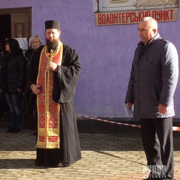 «Овруцька громада продовжує свої добрі справи щодо відправлення гуманітарно допомоги на Схід України. 15 квітня від Волонтерського пункту організації "Волонтери Полісся" рушив черговий гуманітарний вантаж - два мікроавтобуси з продуктами харчування та товарами першої необхідності. У зборі допомоги брала участь громада Овруччини, але цього разу до участі в акції активно долучилась саме релігійна громада, очолювана Благочинним Петром, який, відряджаючи волонтерів у поїздку, провів обряд освячення вантажу. Так що, благодійна допомога овручан рушила в зону АТО не лише з людським теплом і підтримкою ближніх, але й з Божим благословенням. У цій гарній справі взяли участь навіть діти: до великодніх пасок, що випекли дорослі, вони додали символічні великодні писанки та крашанки, зроблені власноруч. Я теж вніс свою скромну лепту в цю доброчинну справу: надав готівкові кошти та 150 літрів пального. Разом з представниками громади волонтерів у зону АТО проводжав і голова Овруцької РДА Сергій Ковердун. Я ж планую 16 квітня рушити з гуманітарним вантажем до міста Славянська (Донеччина), буду супроводжувати закуплені мною і моїми товаришами – коростенцями продукти харчування (8 тонн) для підтримки переселенців з Донбасу«. За інформацією з особистої сторінки на Фейсбук народного депутата України Володимира Арешонкова (Блок Петра Порошенка «Солідарність»)