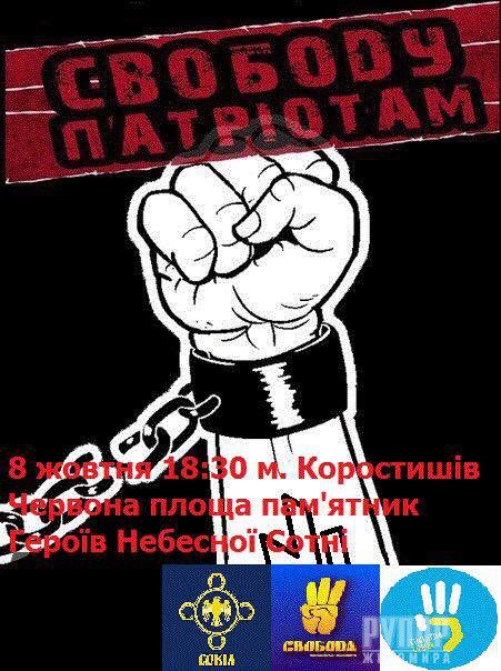 8 жовтня 2015 року в Коростишеві відбудеться марш на підтримку політв'язнів новітнього режиму.