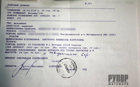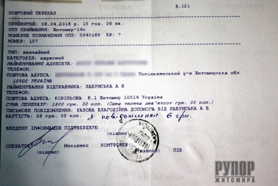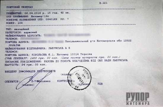 Голова обласної ради Анжеліка Лабунська віддала свою заробітну плату за березень на загальну суму 5 тис. 700 грн трьом жителям Попільнянського району, які звернулися за матеріальною допомогою. Зокрема, 2 тис. 400 грн фінансової допомоги отримала 66-річна пенсіонерка, яка перенесла п’ять важких операцій і потребує додаткового лікування. Допомогу на суму 1 тис. 900 грн голова обласної ради надала 32-річній жінці-інваліду ІІ-ї групи на лікування хіміотерапією. Решту 1 тис. 400 грн зарплати Анжеліка Лабунська перерахувала 10-річному хлопчику-інваліду по зору. Дитині зробили операцію в інституті очних хвороб і зараз потребує післяопераційного лікування. Нагадаємо, що очільник депутатського корпусу на першій сесії обласної ради пообіцяла віддавати свою заробітну плату людям, які потребують фінансової підтримки. Усього, за весь період перебування на посаді, голова обласної ради Анжеліка Лабунська перерахувала жителям області, які зверталися за матеріальною допомогою, майже 25 тис. 500 грн заробітної плати. Прес-служба обласної ради