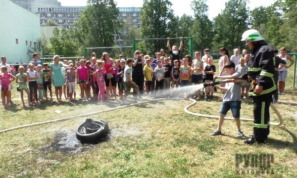 1З метою формування у підростаючого покоління навичок безпечної поведінки, рятувальники систематично проводять різноманітні профілактичні заходи для дітей. 10 серпня фахівці ДСНС та працівники Добровільного пожежного товариства України в Житомирській області завітали до Житомирського обласного лікувально-санаторного центру радіаційного захисту для дитячого та дорослого населення «Дениші», де провели пізнавальну акцію «Я за безпеку». Діти слухали урок на тему «Безпечні вибухонебезпечні предмети», де співробітники ДСНС торкнулися аспектів безпеки дитини при виявленні невідомих, підозрілих предметів, що можуть нести загрозу життю і здоров’ю. Також під час проведення заходу організатори продемонстрували присутнім навчальний документальний фільм «Небезпечні знахідки». На подвір’ї табору рятувальники познайомили учасників зі своєю повсякденною роботою. Для початку діти самотужки використовували вогнегасники, а потім допомагали рятувальникам гасити умовну пожежу. Також вони дізналися про будову і технічні можливості пожежного автомобіля, побачили спеціальний одяг та спорядження, що застосовують у своїй діяльності працівники «Служби порятунку «101». «Зазвичай дітям дуже подобаються заходи, під час яких залучається пожежно-рятувальна техніка, – зауважив начальник Управління ДСНС України у Житомирській області Ігор Нікітчук. – І, як правило, досить активно себе поводять не лише юнаки, а й дівчата. Пам’ятати елементарні правила безпеки необхідно завжди. Біда не обирає часу, будь-то канікули чи робочий день. Обізнане підростаюче покоління – це запорука впевненості у завтрашньому дні. Для нас дуже важливо, щоб у пам’яті дітвори залишалися не лише емоції, а й прості, але такі необхідні знання».