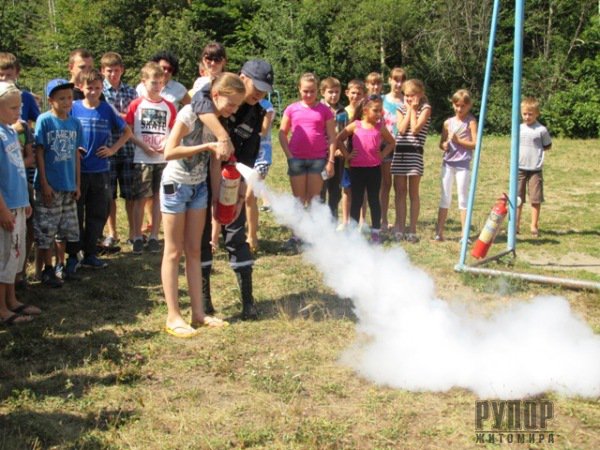 В оздоровчому таборі на Житомирщині рятувальники навчали дітей гасити пожежу