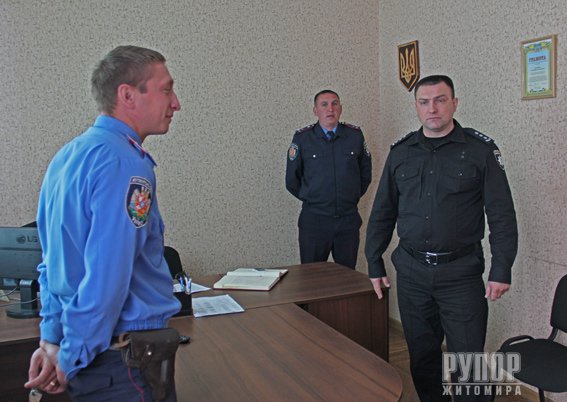 Згодом керівник ГУНП разом з новопризначеним начальником Бердичівського відділу, до складу якого входить і Чуднівське відділення поліції, оглянули наявні приміщення, транспортні та технічні засоби, а також познайомилися з працівниками. До речі, практично, усі вони виконували службові завдання у складі зведеного загону УМВС області у зоні проведення антитерористичної операції. Тож нині у кабінетах поліцейських про ті події нагадують національні прапори, привезені з блокпостів Луганщини.