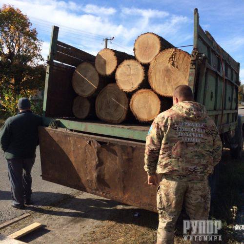 06 жовтня в ході проведення рейдових заходів працівниками Державної екологічної інспекції спільно з Управління СБУ та Головного управління національної поліції в Коростенському районі виявлено вантажний автомобіль марки ЗІЛ завантажений лісопродукцією, на якій не було маркування та чипів. На вимогу зупинитись водій транспортного засобу не відреагував та додав швидкості намагаючись втекти, в результаті чого було викликано оперативну групу з Ємільчинського району для перехоплення та зупинки даного автомобіля. Транспортний засіб вдалось зупинити вже в Ємільчинському районі в с. Степанівка. При огляді було виявлено дев’ять колод лісопродукції породи дуб діаметром понад 50 см та довжиною 3,5 м. На дану лісопродукцію документи відсутні. Наразі проводяться слідчі дії.