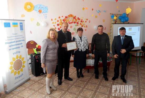 | У двох громадах Коростенщини встановлено сучасне вуличне освітлення 17.11 11:55     У рамках реалізації ІІІ фази спільного Проекту Європейського Союзу та програми Розвитку ООН «Місцевий розвиток, орієнтований на громаду» у двох громадах Коростенського району встановили сучасне вуличне освітлення. Зокрема, у селі Хотинівка актив громади, після проведення опитування селян, підготував заявку на отримання гранту «Інноваційні енергоефективні заходи вуличного освітлення». На будівництво мережі з використанням відновлювальних джерел енергії (енергії сонця) профінансовано понад 310 тис грн, з яких 222 тис грн – це кошти ЄС/ПРООН, понад 17 тис грн надала громада, ще майже 80 тис грн виділено з обласного бюджету. За ці кошти було встановлено 14 світильників на сонячних батареях. Аналогічний проект реалізовано у селі Веселівка, де проведено реконструкцію мережі вуличного освітлення. У селі встановлено 40 світлодіодних світильників. Загальна вартість проекту – майже 350 тис грн, з яких більше 140 тис грн виділила громада та сільська рада. Урочисте відкриття обох об’єктів відбулося 16 листопада за участі керівників району та начальника управління з питань реформи місцевого самоврядування та децентралізації влади, реалізації проектів та програм виконавчого апарату обласної ради. Реалізація цих проектів дозволить підвищити рівень комфорту та безпеки населення сіл, а також зменшити бюджетні витрати на електроенергію.Прес-служба обласної радиRuporZT