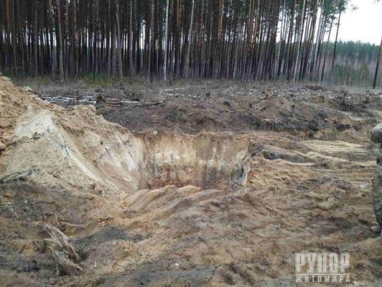 Приватне підприємство, що самовільно видобувало пісок у промислових масштабах, викрила у Коростишівському районі Житомирщини Служба безпеки України спільно з поліцією та Державною екологічною інспекцією. Піщаний кар’єр був облаштований зловмисниками поблизу села Розкидайлівка на землях лісового фонду Шахворостівського лісництва. У середині 2015 року рішенням Житомирської обласної ради ця земельна ділянка площею 39,4 га справді була передана видобувному підприємству у користування. Але у квітні 2016 року за позовом прокуратури Вищий адміністративний суд скасував рішення облради як протиправне та повернув землю до комунальної власності. Нанесена навколишньому середовищу шкода та збитки, завдані незаконними діями зловмисників державі, уточнюються у межах кримінального провадження за ч. 1 ст. 240 (порушення правил охорони або використання надр) Кримінального кодексу України.