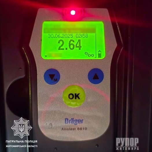 За минулий тиждень на Житомирщині патрульні зафіксували 27 випадків керування водіями в стані сп’яніння чи з ознаками сп'яніння