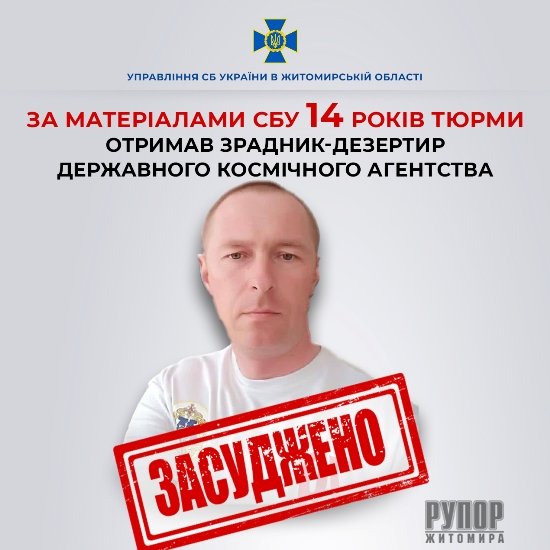 У Житомирі за матеріалами СБУ 14 років тюрми отримав зрадник-дезертир Державного космічного агентства України